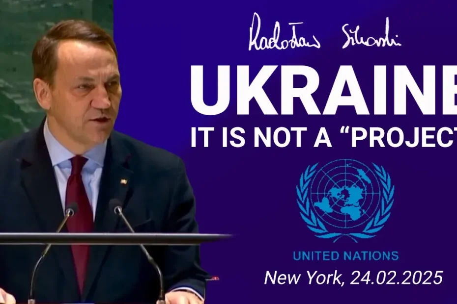 Read the full transcript of Minister of Foreign Affairs of Poland Radosław Sikorski’s speech titled ‘Ukraine Is Not A “Project”‘ at UN General Assembly, New York on Feb 24, 2025.