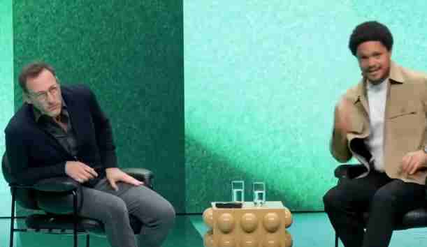 TREVOR NOAH: It’s interesting that you said this. So, I’ve always felt like, you know, I’m not a very superstitious person, grew up very religious, but I do believe in some sort of magic in the universe. And every time I bump into you, I feel like we’re thinking about the same thing, but on a slightly different path. And usually, other people are forced to listen to us, just talk about that slightly different path. I apologize.
